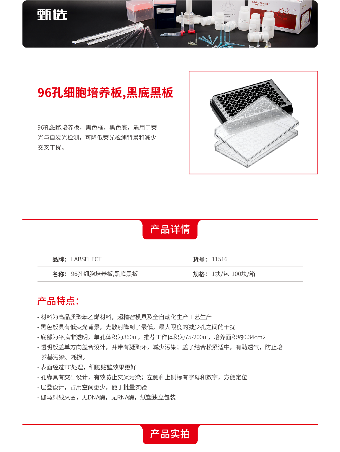 11516 96孔细胞培养板,黑底黑板(11516)